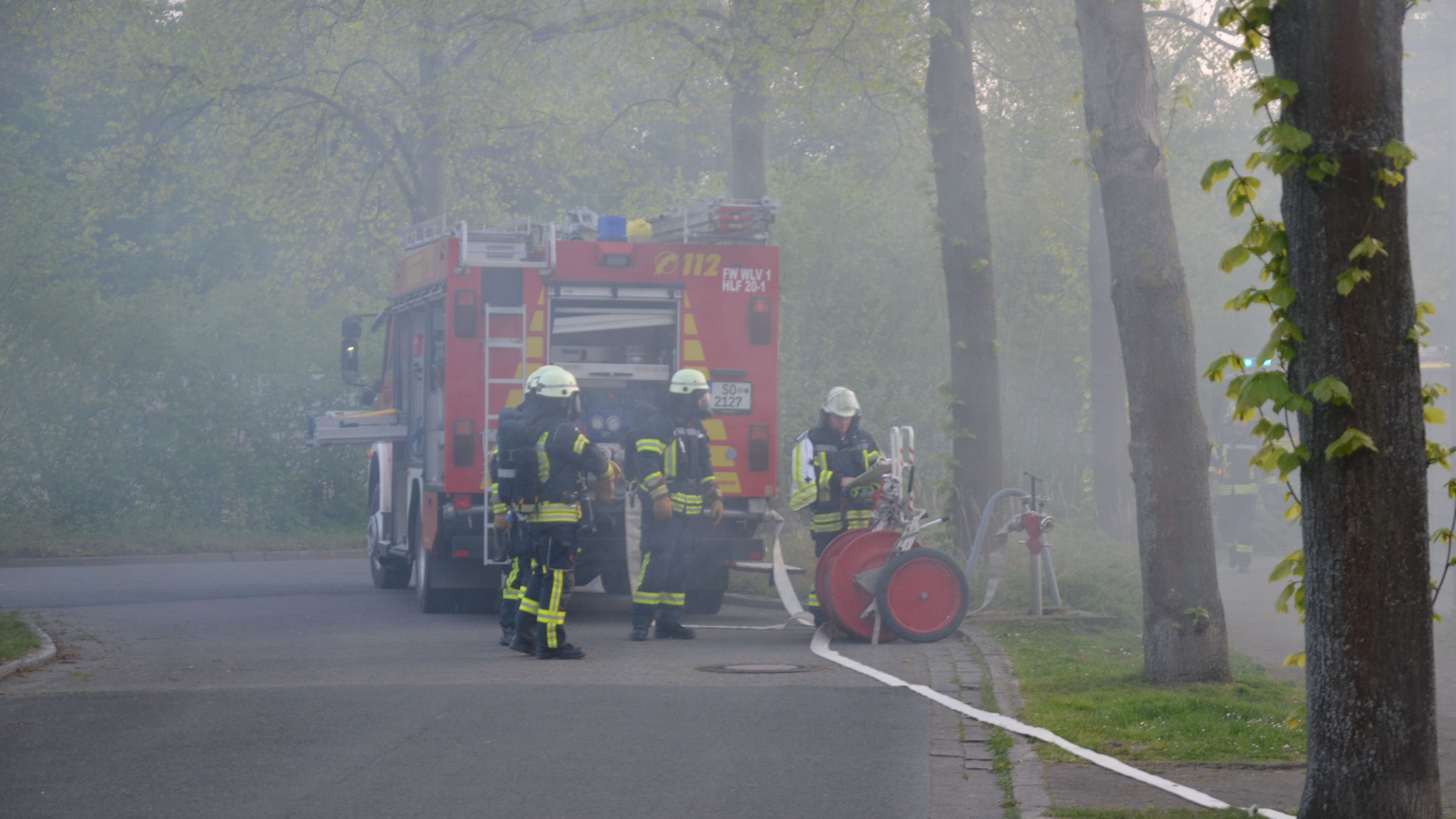 Übungsobjekt waren die Räumlichkeiten der Jugendfeuerwehr im Bauhof in Welver. Laut Übungsdrehbuch kam es dort beim Pizza backen zu einem Brand, infolgedessen 8 bis 9 Personen im Gebäude als vermisst galten.