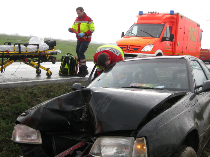 Ein Verkehrsunfall am Samstag gegen 12:00 Uhr forderte zwei Verletzte. Ein Opel Kadett befuhr die Werler Strasse in Richtung Welver. Kurz hinter Scheidigen kam der Wagen dann nach links von der Straße ab und prallte im Straßengraben frontal gegen einen Baum. Die Wucht des Aufpralles war so gewaltig, dass sich der Stamm des Obstbaumes spaltete. Der durch Zufall auf der Rückfahrt befindliche RTW aus Welver, war wenige Minuten nach dem Unfall vor Ort. So wurden weitere Rettungsmittel, sowie die Feuerwehr angefordert. Gegen 12.14 Uhr rückte die Löschgruppe Welver zur Werler Straße aus. Da beide Personen schon aus dem Fahrzeug befreit waren, sicherte die Feuerwehr die Einsatzstelle und streuten austretende Betriebsstoffe ab. Da durch den Aufprall das Getriebe des Fahrzeuges zerbrach, trat das gesamte Getriebeöl aus. Hier wurde durch das Ordnungsamt Welver die untere Wasserbehörde informiert, da teile der Betriebsstoffe ins Erdreich eingedrungen waren und der Boden nun ausgetauscht werden muss. Der Baum der den Kadett bremste, wurde aus Sicherheitsgründen von der Feuerwehr gefällt. Ebenso musste noch ein Meerschweinchen der Beifahrerin eingefangen werden. Nach dem Pressebericht der Polizei, geht diese davon aus, dass der kleine Nager auch der Grund für den Unfall war. Der 22-jährige Fahrer widmete sich der Beifahrerin, die sich um das kurz vorher gekaufte Tier kümmerte und war so für einen kurzen Moment abgelenkt. |
