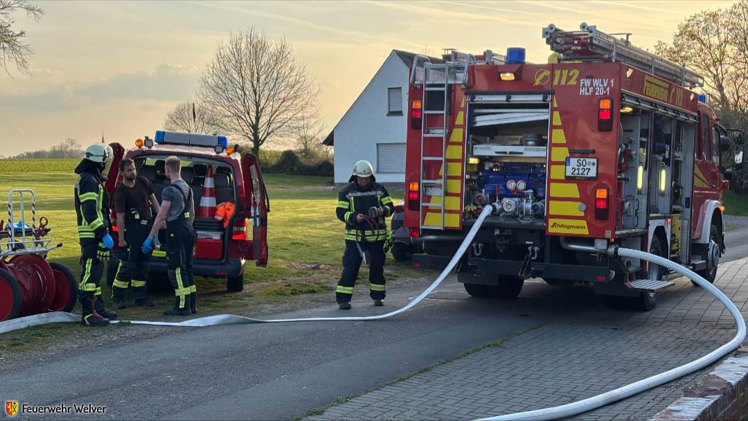 Am Freitagabend wurden die Feuerwehr Welver, die Drehleiter aus Werl sowie der Rettungsdienst mit dem Stichwort F3_Y – Zimmerbrand mit Menschenleben in Gefahr zu einem Einfamilienhaus nach Meyerich alarmiert. Beim Eintreffen der ersten Einsatzkräfte drang dichter Rauch aus der Haustür sowie aus mehreren Fenstern. Nach der ersten Erkundung stellte sich glücklicherweise heraus, dass sich keine Personen mehr im Gebäude befanden. Allerdings drohte der Brandrauch im Inneren des Hauses durchzuzünden. Zudem befanden sich noch drei Katzen im Gebäude. Unverzüglich ging ein Trupp unter Atemschutz zur Brandbekämpfung in das Gebäude vor. Im Bereich des Wohn- und Esszimmers konnte eine brennende Sitzgarnitur lokalisiert und mittels C-Rohr abgelöscht werden. Parallel dazu durchsuchte ein weiterer Angriffstrupp die übrigen Räumlichkeiten nach den vermissten Tieren. Die drei Katzen konnten schließlich im Keller aufgefunden und aus dem Gebäude gerettet werden. Aufgrund der starken Rauchentwicklung war das gesamte Gebäude – vom Keller bis zum Dachgeschoss – erheblich verraucht. Es mussten umfangreiche Lüftungsmaßnahmen durchgeführt werden, um das Gebäude zu entrauchen. Das Einfamilienhaus ist infolge des Brandereignisses derzeit unbewohnbar. Nach etwa zwei Stunden Nachlöscharbeiten konnte schließlich „Feuer aus“ gemeldet werden. Die Kriminalpolizei hat die Ermittlungen zur Brandursache aufgenommen. ⚠️ Hinweis: Die Feuerwehr weist erneut auf die Installation von Rauchwarnmeldern hin. Diese erkennen Brände bereits in der Entstehungsphase und warnen die Bewohnerinnen und Bewohner frühzeitig. Sollten Sie einen ausgelösten Rauchwarnmelder aus einem anderen Gebäude hören, zögern Sie nicht, die Feuerwehr zu rufen. |