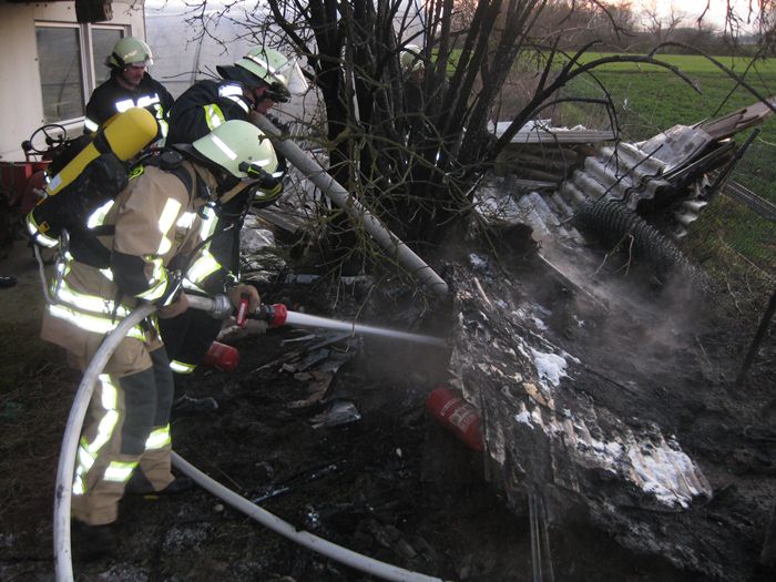 Die Feuerwehr wurde heute nach Illingen gerufen. Dort brannte erst ein Nutzfeuer, was aber durch starken Funkenflug auf einen angrenzenden Baum übergriff. Die Thermik zog auch schon in die Fassade des Nebengebäudes ein. Durch das schnelle Eingreifen der Feuerwehr konnte das Feuer schnell gelöscht und somit der Brandschaden auf den Baum und die daneben gelagerten Ethanitplatten beschränkt werden. Im Erstangriff ging ein Trupp unter schwerem Atemschutz und einem C-Rohr vor. Im weiterem Verlauf wurde ein Schaumangriff aufgebaut und mit der Wärmebildkamera die Glutnester aufgesucht. |