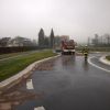 Der anhaltende Regen sorgte jedoch nicht nur für die Ausbreitung des Verunreinigungen, sondern stellte die Einsatzkräfte darüber hinaus noch vor weitere Probleme. Durch die Entwässerung des Kreisverkehres gelangte ein Teil des Wasser-Kraftstoffgemisches in einen nahegelegenen Straßengraben, gemeinsam mit Vertretern der Gemeindeverwaltung sowie der unteren Wasserbehörde des Kreises wurde entschieden den Eintrittsbereich großräumig abzutragen. „Der Graben liegt derzeit glücklicherweise trocken, ansonsten hätte das Gemisch direkt in den Salzbach fließen können, sodass wir nur die räumlich begrenzte Verunreinigung beseitigen müssen“, erklärte Einsatzleiter Daniel Sommer die getroffen Vorsichtsmaßnahmen. Um ein weiteres Nachfließen zu verhindern, wurden zusätzlich sämtliche betroffenen Abläufe bis zum Ende des Einsatzes abgedichtet.