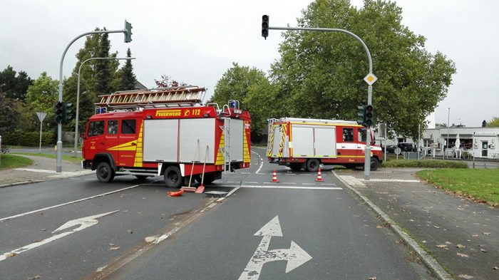 Durch einen Auffahrunfall zwischen einem Golf und einem LKW kam es beim PKW zu einem erheblichen Schaden im Motorbereich. Dabei traten Motoröl und Kraftstoff aus. Durch den einsetzenden Regen und den fließenden Verkehr wurde die Verunreinigung auf eine Länge von zirka 400 Metern verteilt. Die Feuerwehr sperrte den betroffenen Bereich ab und nahm das Ölgemisch mit Bindemittel auf. Dabei wurden die eingesetzten Kräfte von einem Lohnunternehmer mit einer Kehrmaschine unterstützt.