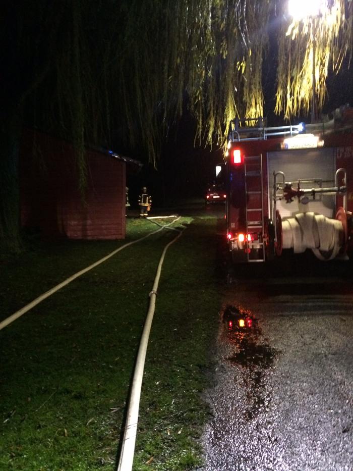 Aufgrund eines verstopften Ablaufs staute sich ein Wassergraben an. Das aufgestaute Wasser drohte nun in ein Wohnhaus einzudringen. Die Feuerwehr förderte mit zwei Tauchpumpen das Wasser vom Graben in einen naheliegenden Abwasserkanal.